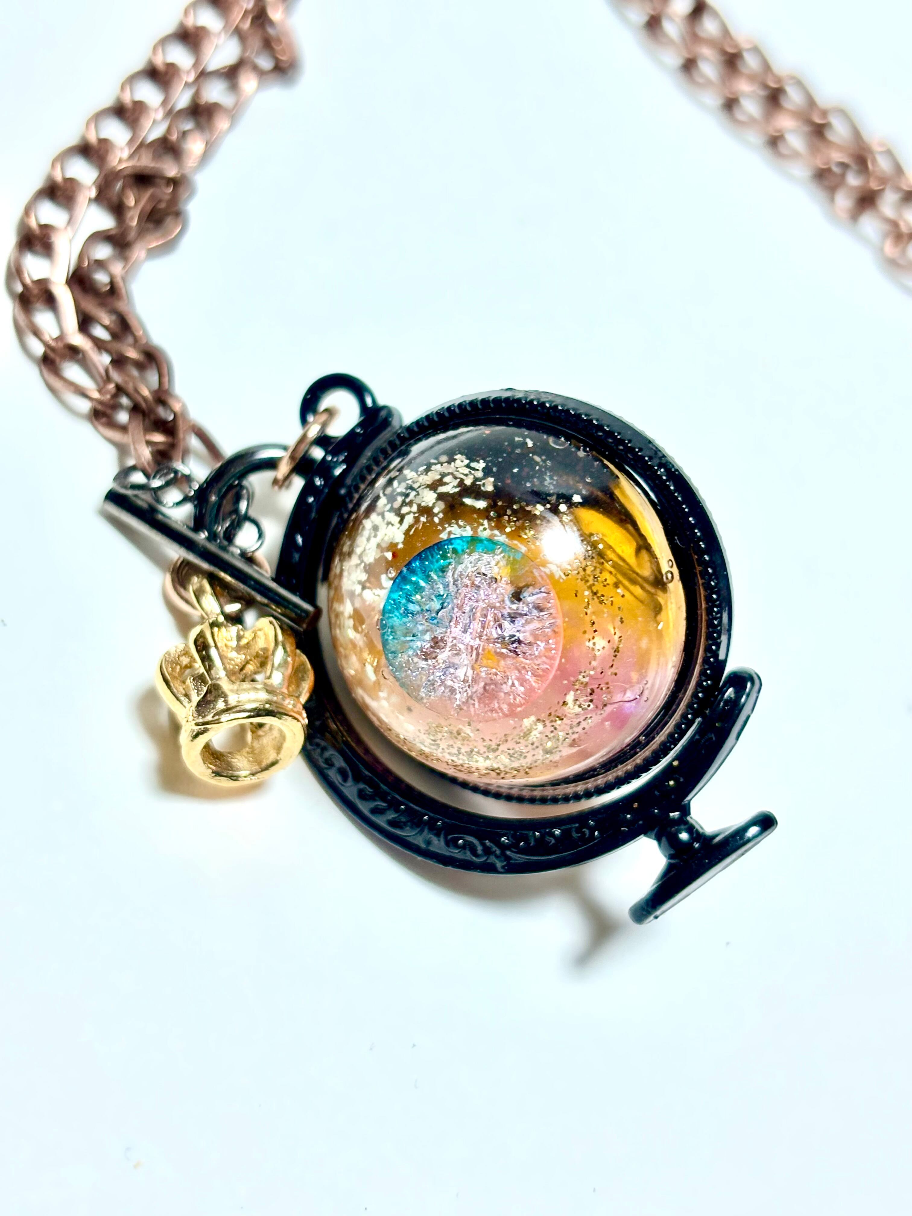 「銀河の女王(オレンジ)」は、鮮やかなオレンジ色の宇宙の銀河を閉じ込めた美しい天球儀ペンダントです。このアイテムは、宇宙の神秘を身近に感じることができる幻想的なデザインが魅力となっています。チェーンの長さは約50センチで、シンプルでありながらも深い存在感を持ち、男女問わずお楽しみいただける一品です。日常のファッションに特別なアクセントを加え、特別な瞬間にもぴったりです。